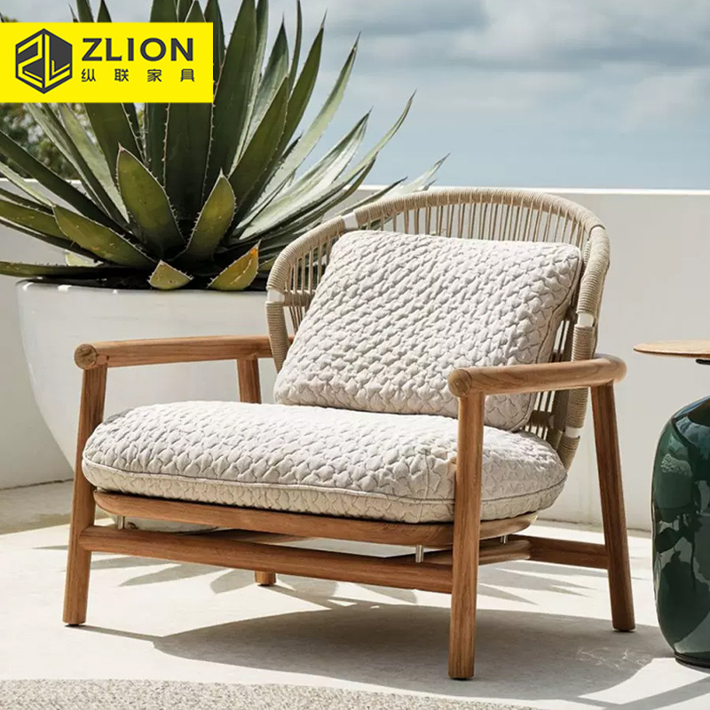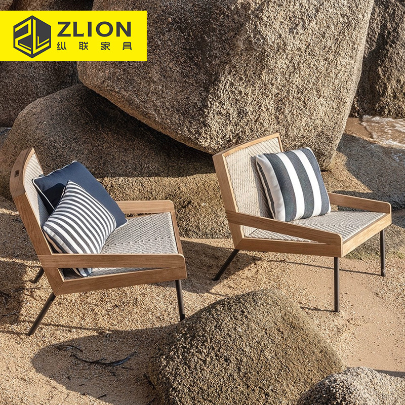 ヴィラ屋外中庭ソファハイエンド無垢材ガーデンバルコニー家具オープンエアホテルテラスチークリラックス家具