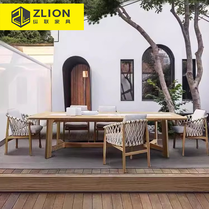 屋外ヴィラ中庭テーブルと椅子ガーデン無垢材B&B家具防水性と日焼け止めシンプルなレジャー籐チークテーブルと椅子