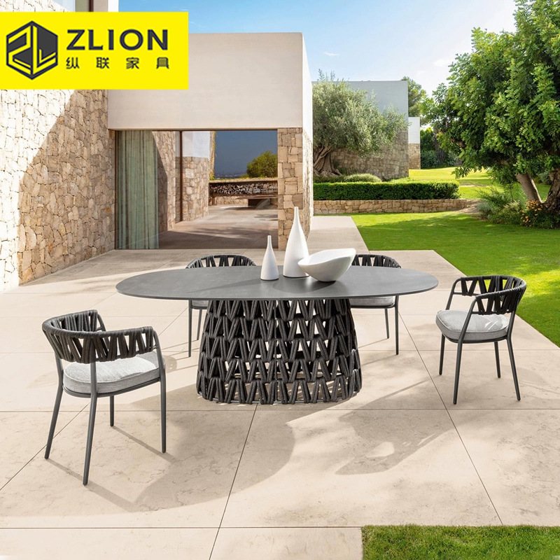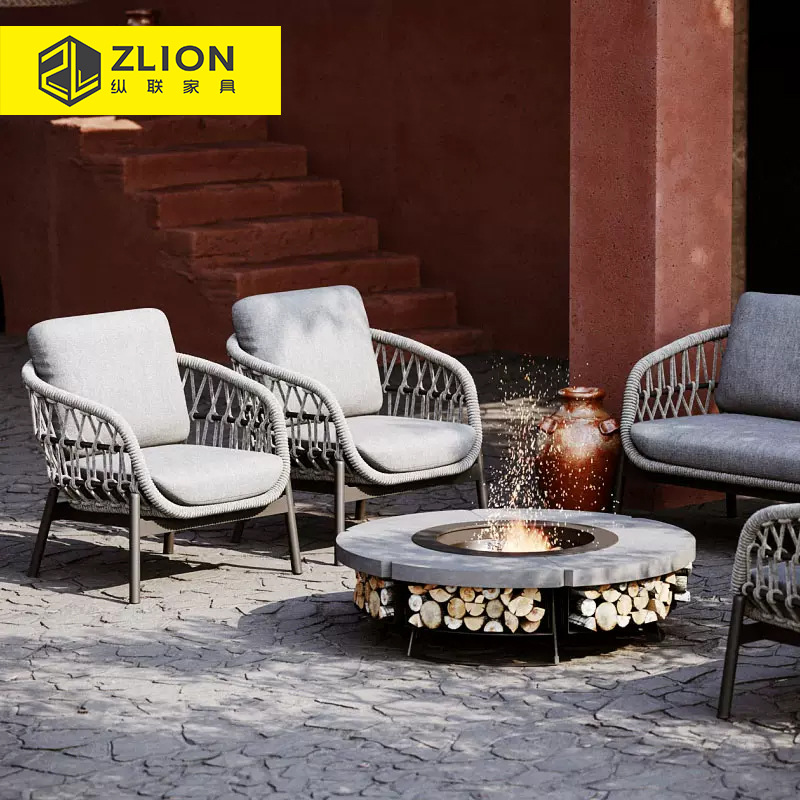 北欧屋外ヴィラ中庭ソファホテルB&B屋外ロープ織家具テラスバルコニーレジャーソファセット