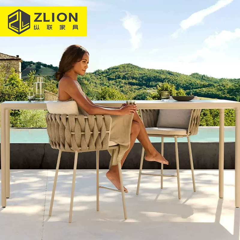 屋外ロープテーブルと椅子、ヴィラガーデン、屋外ハイエンド家具、テーブルと椅子、レジャー籐椅子、中庭テーブルと椅子の組み合わせ
