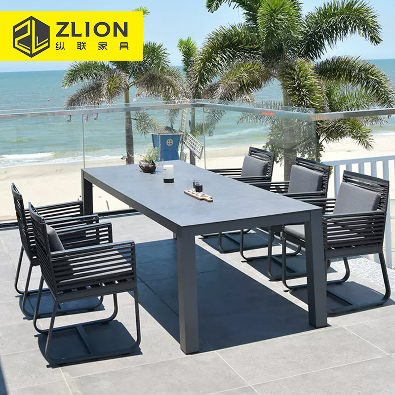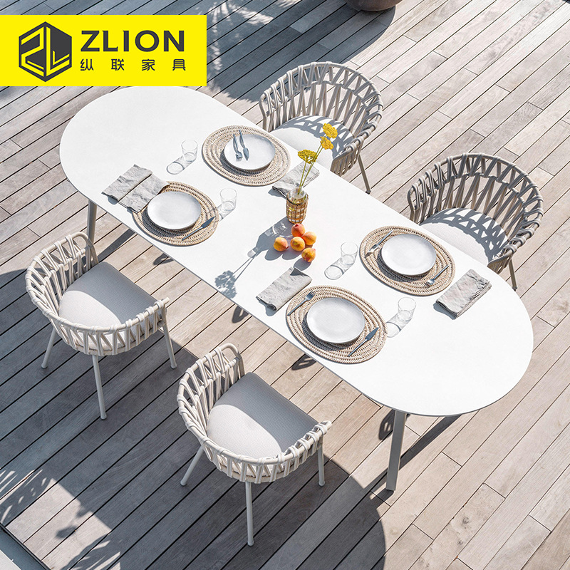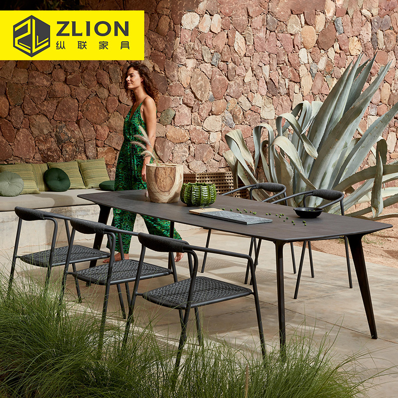 屋外ガーデンパティオテーブルと椅子ヴィラハイエンドロックプレートダイニングテーブルと椅子の組み合わせテラスバルコニー屋外レジャー籐椅子