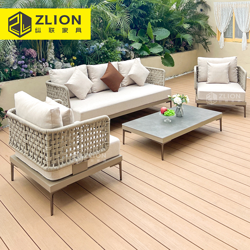 北欧屋外ヴィラロープ織りソファレジャーガーデンパティオソファ家具リビングルームバルコニー防水日焼け止めソファ