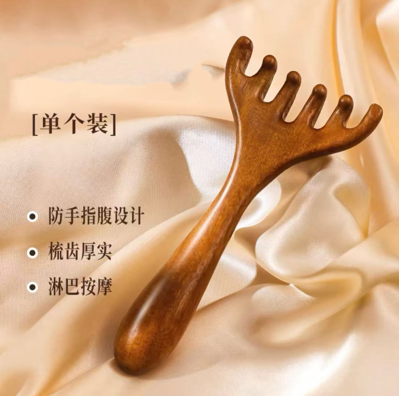 五爪金糸檀木頭部マッサージ櫛経絡摘通神器頭皮リンパ養生道具五指ブラシ