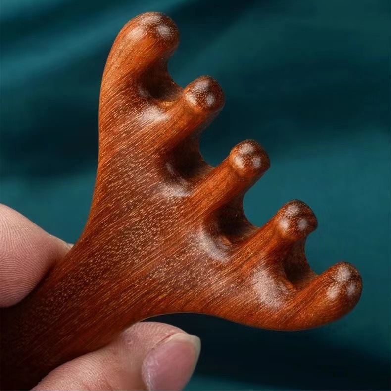 鹿の角のマッサージの櫛の経絡のマッサージの櫛の六爪の木の櫛は頭を撫でて穴をかすめて鹿の角の経絡の櫛の頭部のマッサージ器を掻きます。