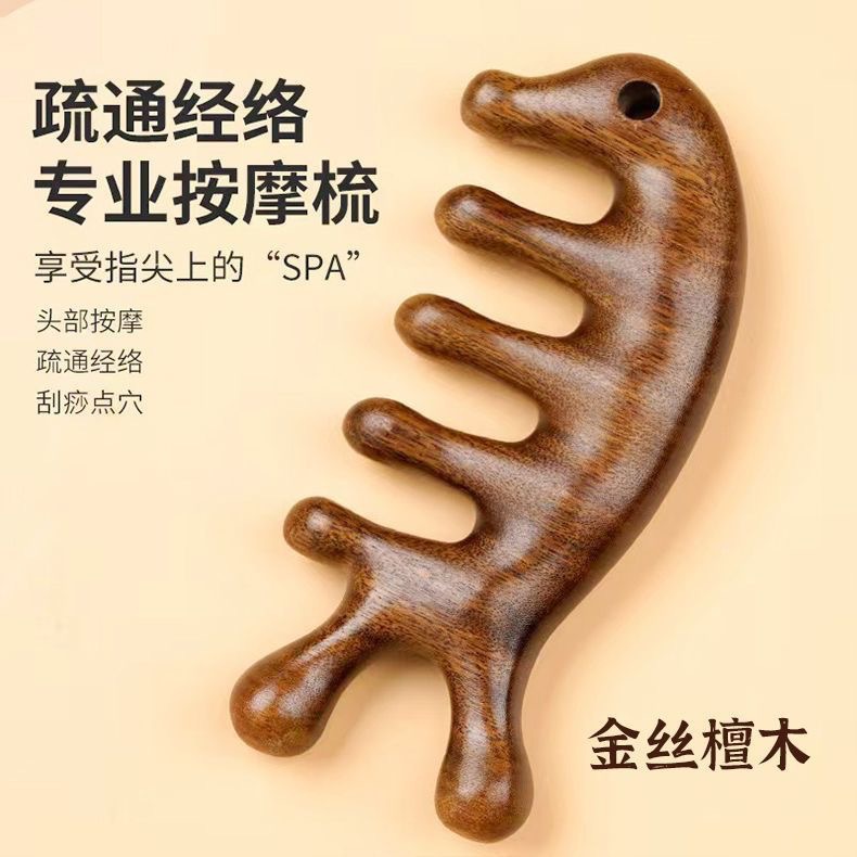 金糸緑檀経絡櫛海馬型檀木頭皮実木櫛広告プレゼント櫛