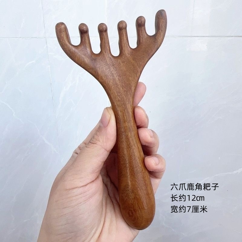 五爪鹿角頭部マッサージ経絡櫛養生頭治療道具天然檀木頭皮掻爬疎通神器
