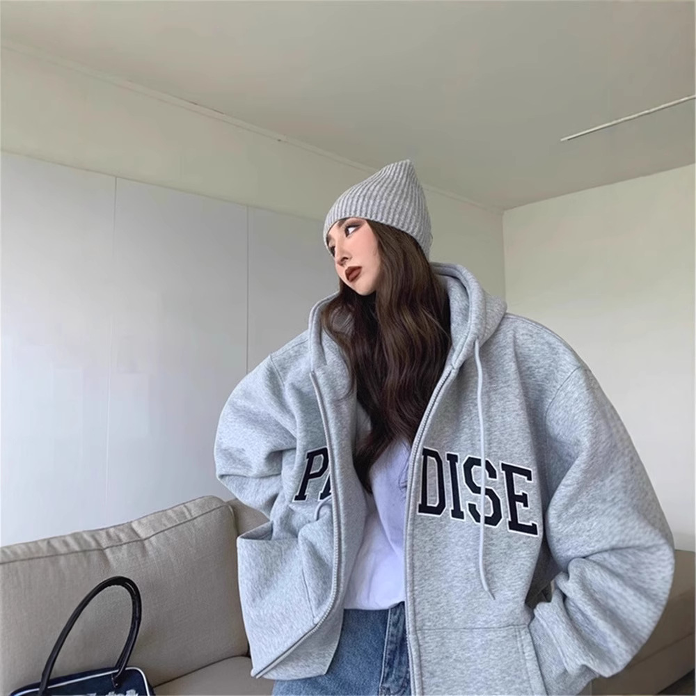 2025年秋冬韓国風婦人服、裏起毛・厚手・ゆったり長袖プルオーバー無地フード付きスウェットシャツ(越境供給)
