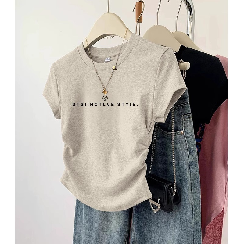 跨境货源 袖套机能风辣妹卡通短袖t恤女夏设计感小众别致正肩上衣