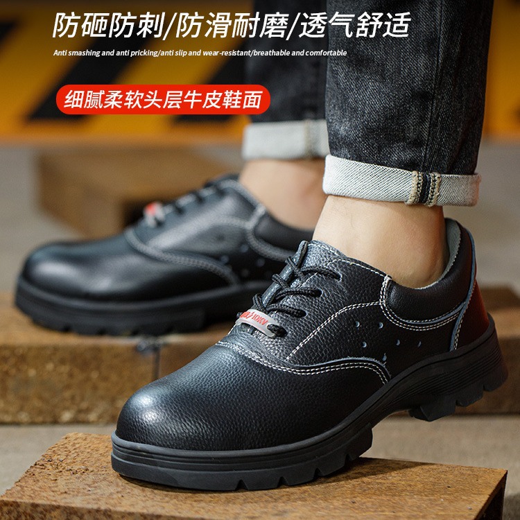 現物卸売り低助鋼包頭労保靴通気防止打刺耐摩耗性中実底転牛皮労保靴男