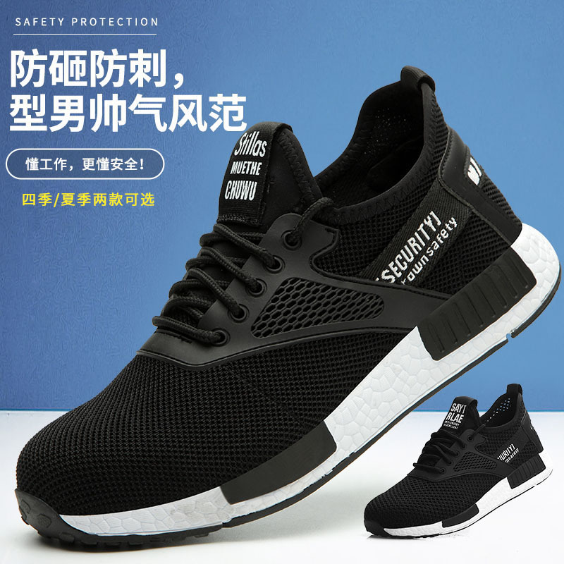 新型現物四季型夏型ファッション超軽量eva通気飛織防打防刺着用労働保険靴