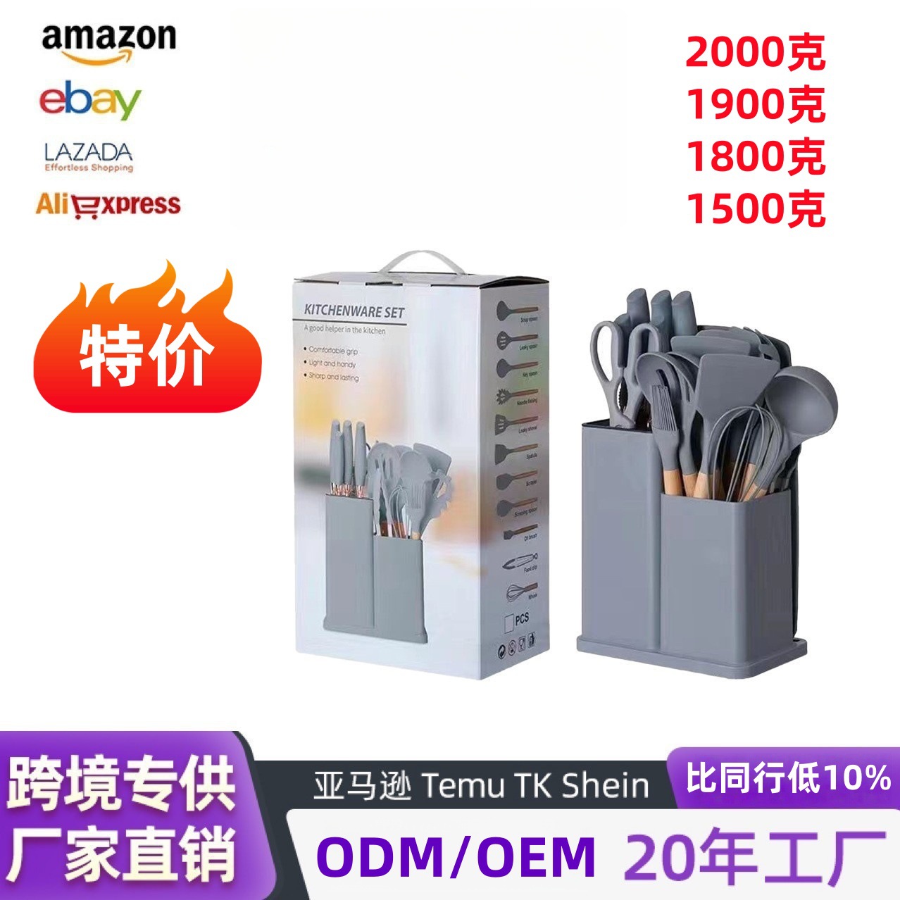 外国貿易はシリカゲルの調理器具19点セットの収納桶付きステンレス調理器具セットのキッチンセットのプレゼントセットです。