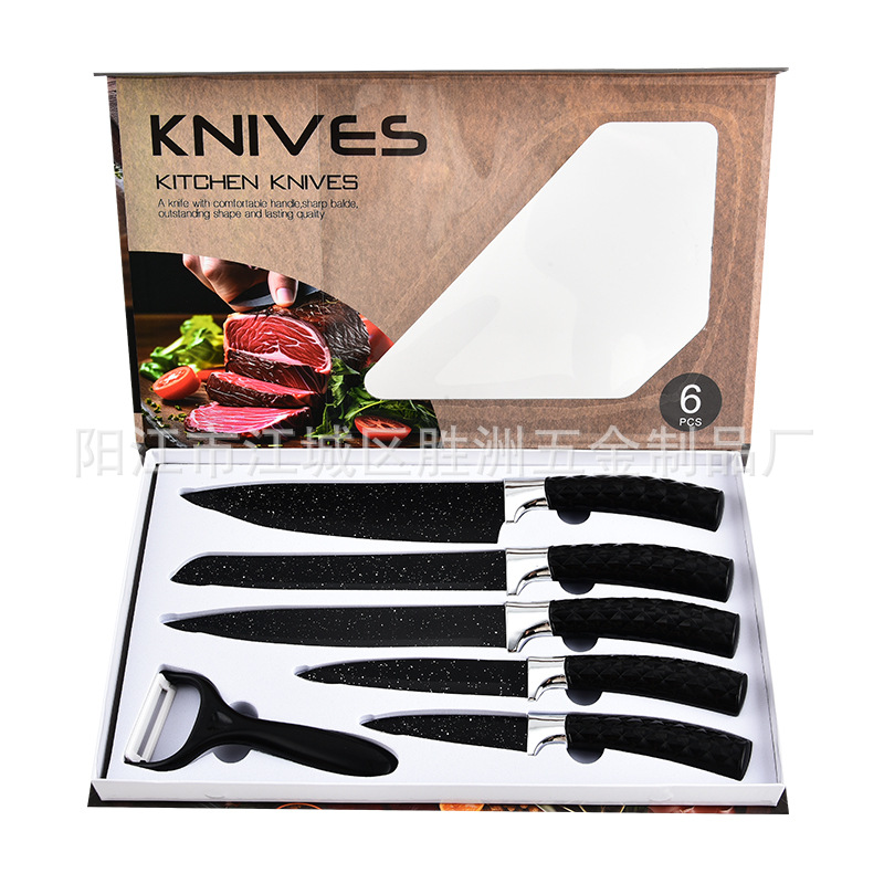 ダイヤモンド柄ステンレス6点セット刃物ブラックフルーツナイフシェフナイフキッチンツールキッチンセット刃物ギフトボックス