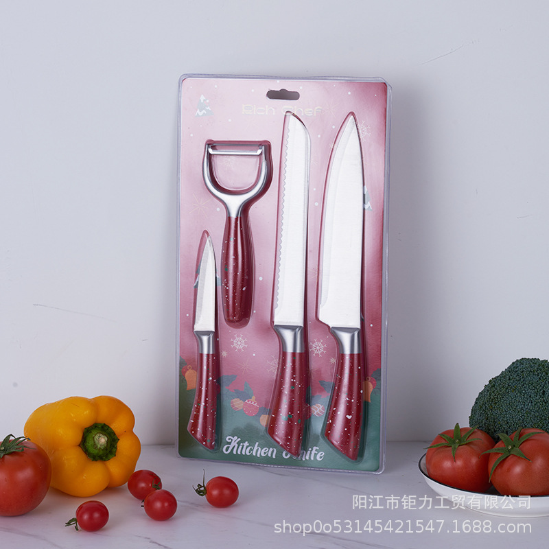 外国貿易クロスボーダー商品ソースステンレスキッチン刃物4点セット家庭用コックナイフパンナイフセット卸売り