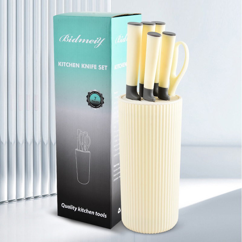 クロスボーダー新型キッチン刃物6点セットステンレスカラープリント麦わらセット家庭用キッチン補助食品セット