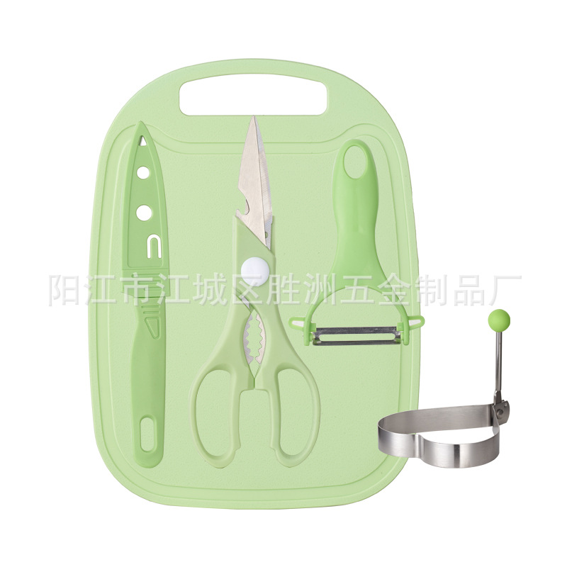 ベビーサプリメント刃物セットステンレスフルーツナイフ卵焼き器5点セットプラスチックまな板子供キッチン刃物