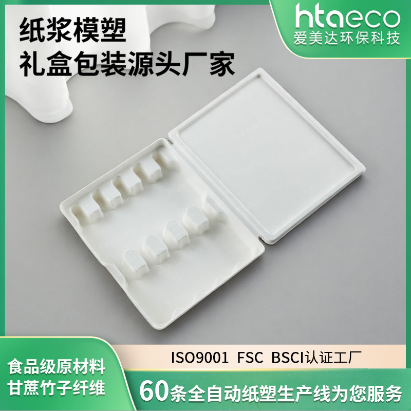 熱売サトウキビ植物繊維白色角型パルプ成形ギフトパルプ包装箱湿圧月餅包装箱