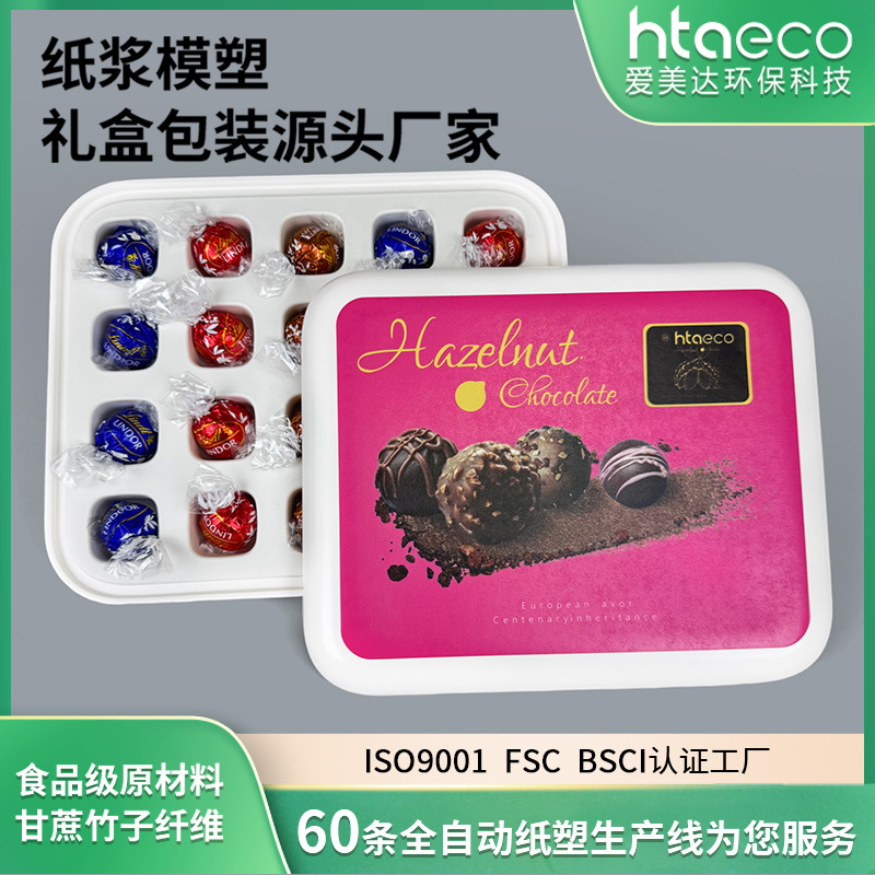 国境を越えたチョコレートパルプ包装箱環境に優しい分解性天蓋カスタムチョコレートパルプ包装箱