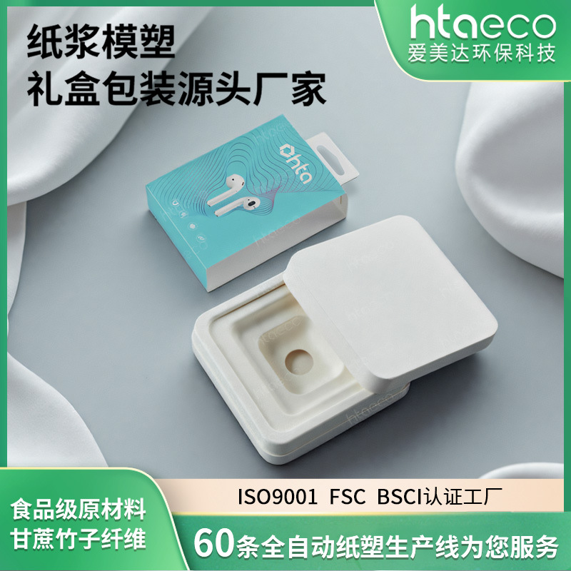 生分解性ヘッドフォンボックスカスタマイズされた耐衝撃性パルプ成形パッド環境に優しい紙トレイ落下防止緩衝包装ボックスヘッドフォン