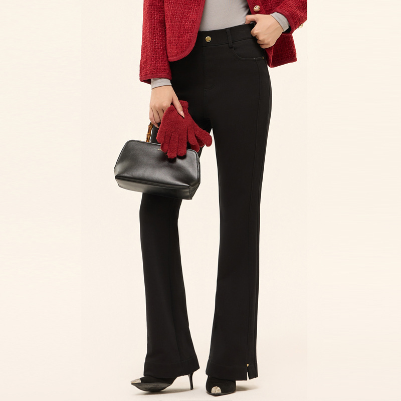 越境ファッションのガチョウの毛の小さい黒いズボンの冬の外は黒いストレートのズボンの新型のベルベットの保温の女性のガチョウの毛のズボンを着ます。