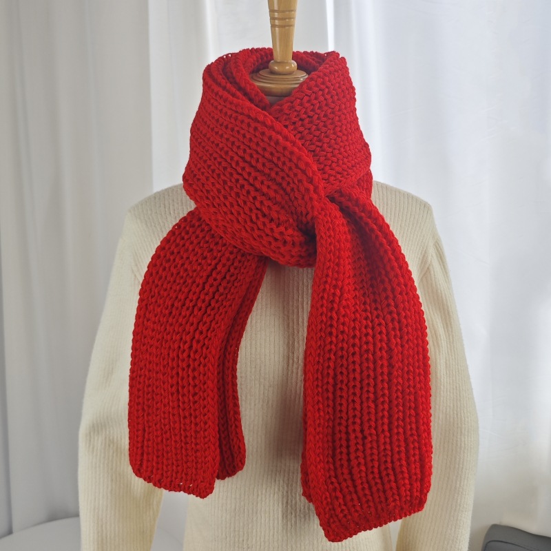 マフラー女性冬2024新ニット毛糸マフラー赤い韓国版百合高級感純色保温カップル