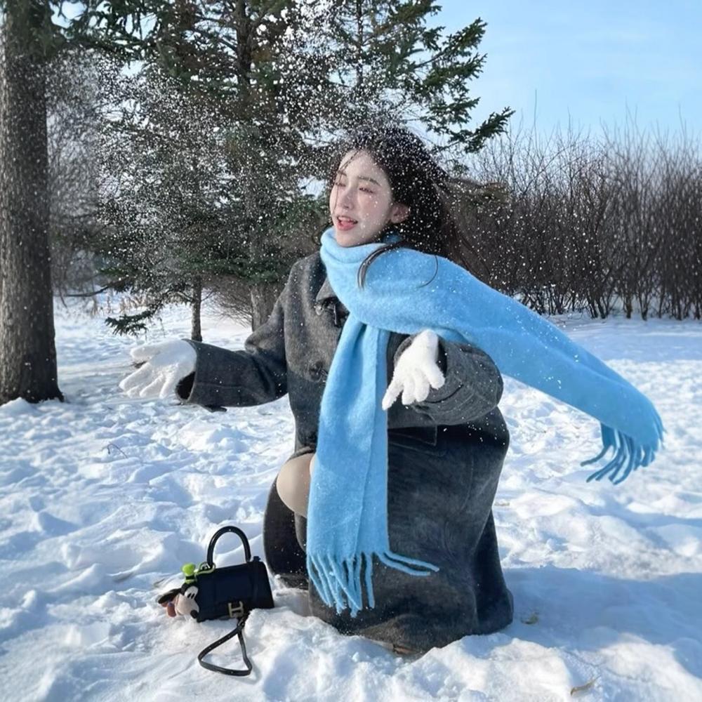 韓国版ins百合柔らかい毛糸マフラー女性冬2024新型学生は保温ニットのマフラーを厚くした