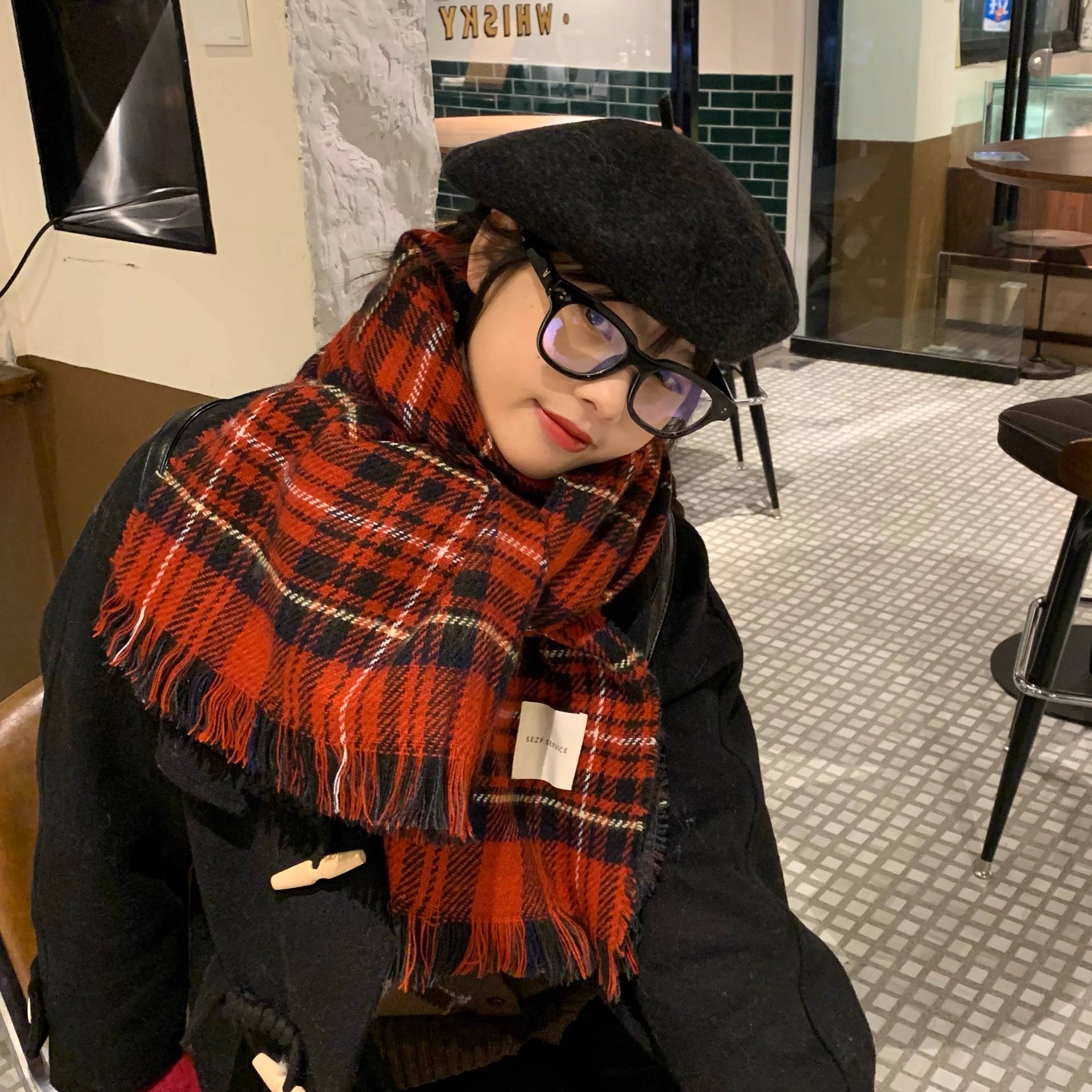 祝日の雰囲気感/赤い格子のレトロなマフラーの女性韓国版の白いインスタのマフラーの保温の学生のカップルのマント