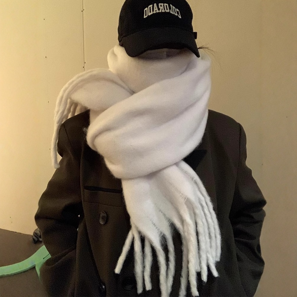 純色の厚いマフラーの女子学生は2024冬の新型韓国版ins冬の学生はマントを合わせて首の白色を囲みます。