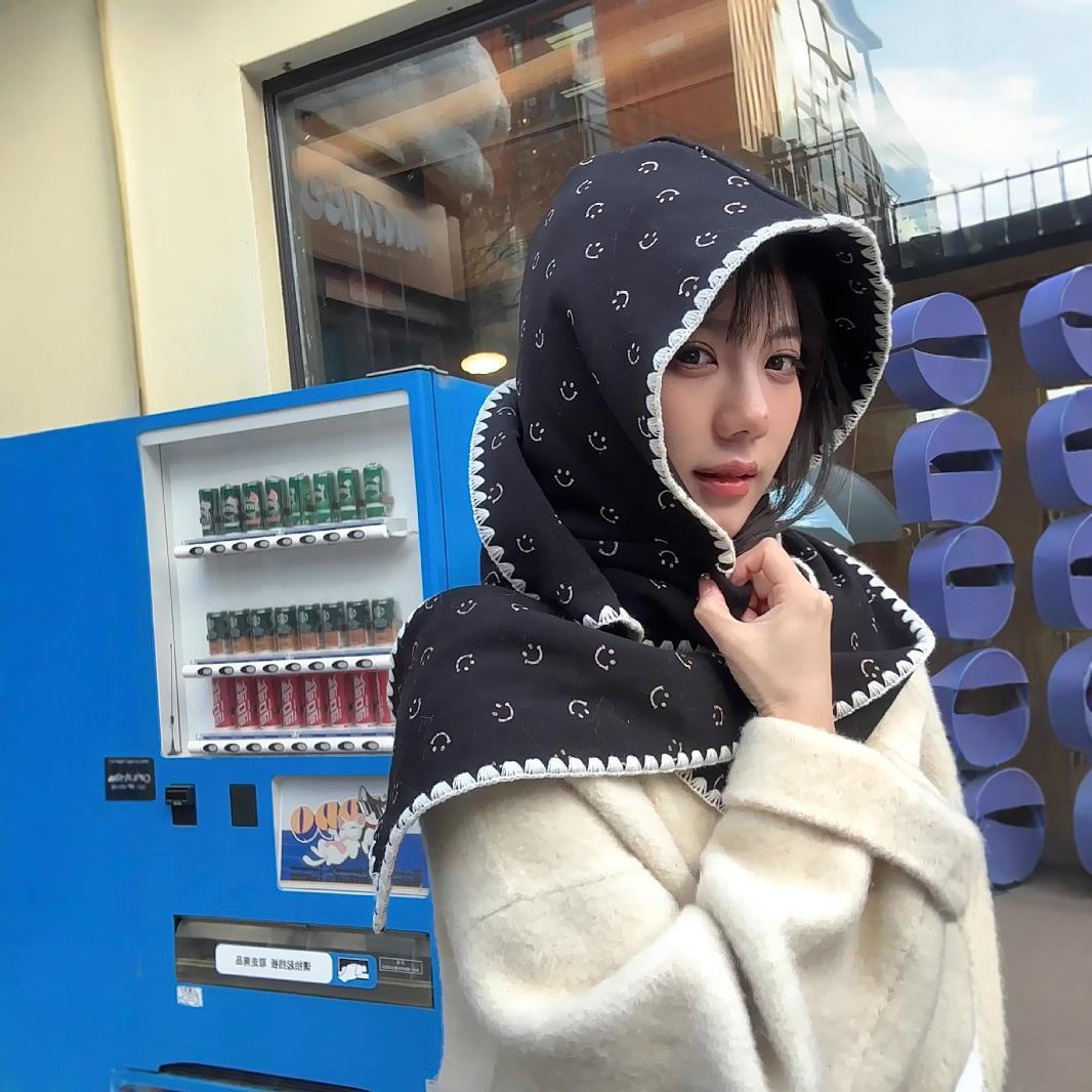 Ins笑顔韓系レース帽子付きマフラー女性秋冬小衆帽子マフラー一体カバー