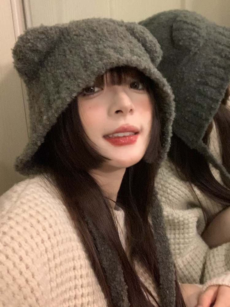 かわいい熊の帽子の子供の冬の韓国版ins保温灰色の耳の帽子秋冬ニットの毛糸の帽子の大きい頭の周り