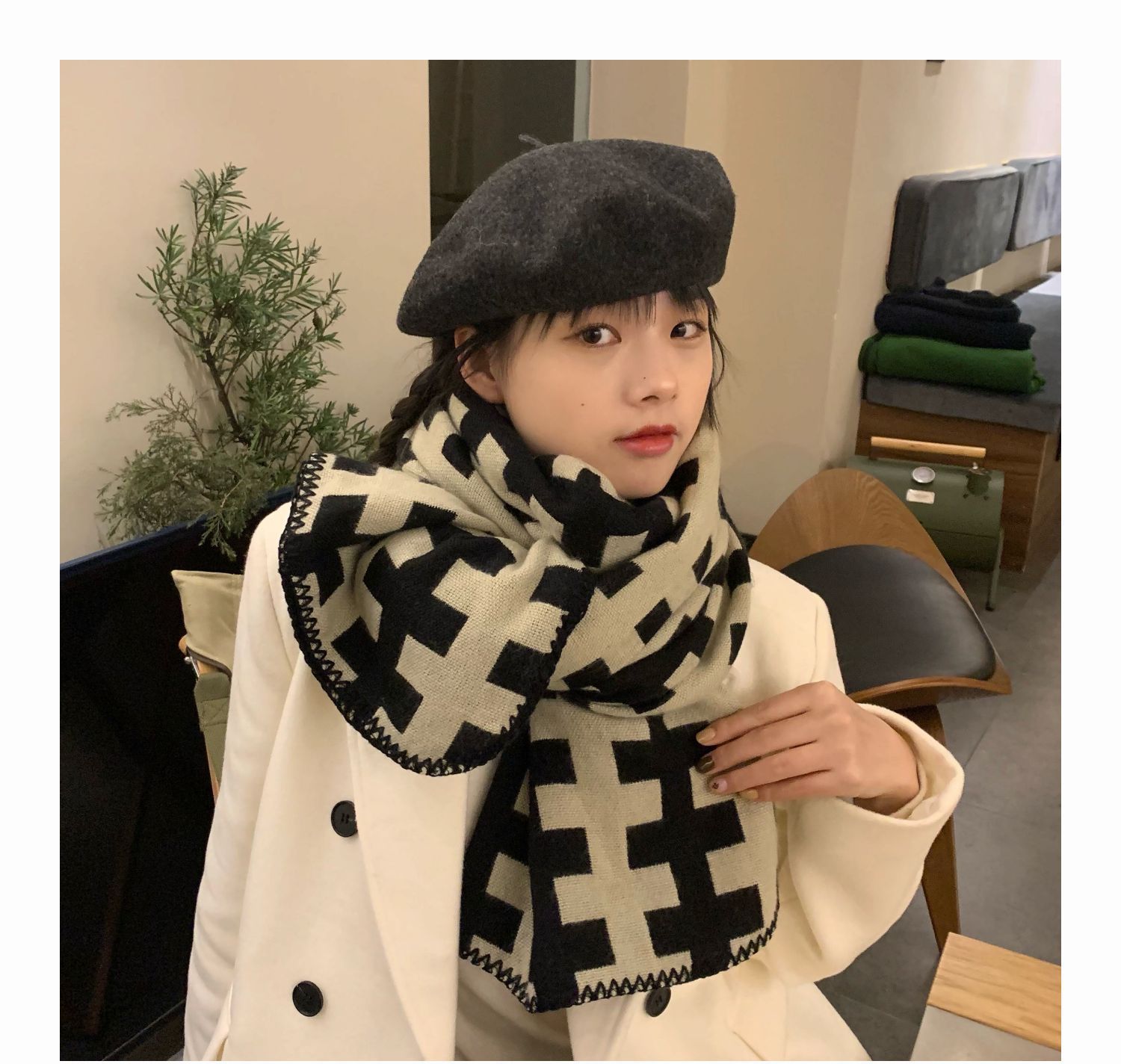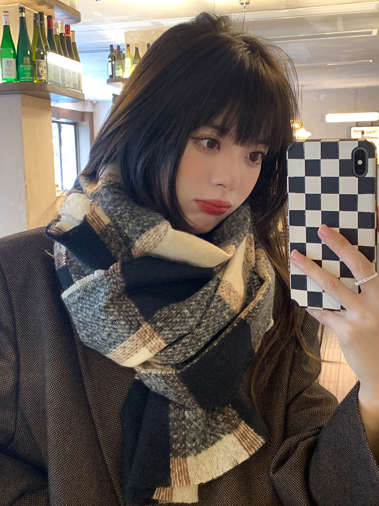 ネット紅ins大棋盤格マフラー女性秋冬白黒格子韓国版百合冬保温ロングマフラー