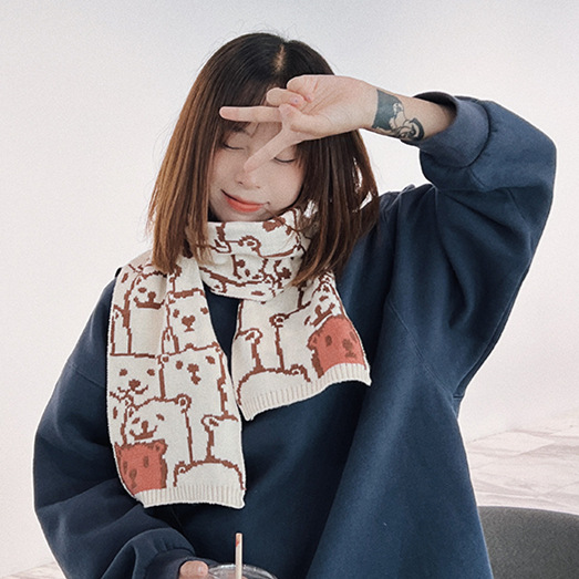 両面の熊のマフラーの女性の秋冬の韓国版の学院の風はかわいいです。