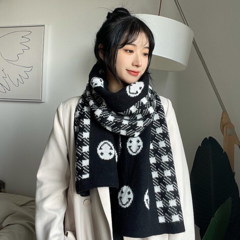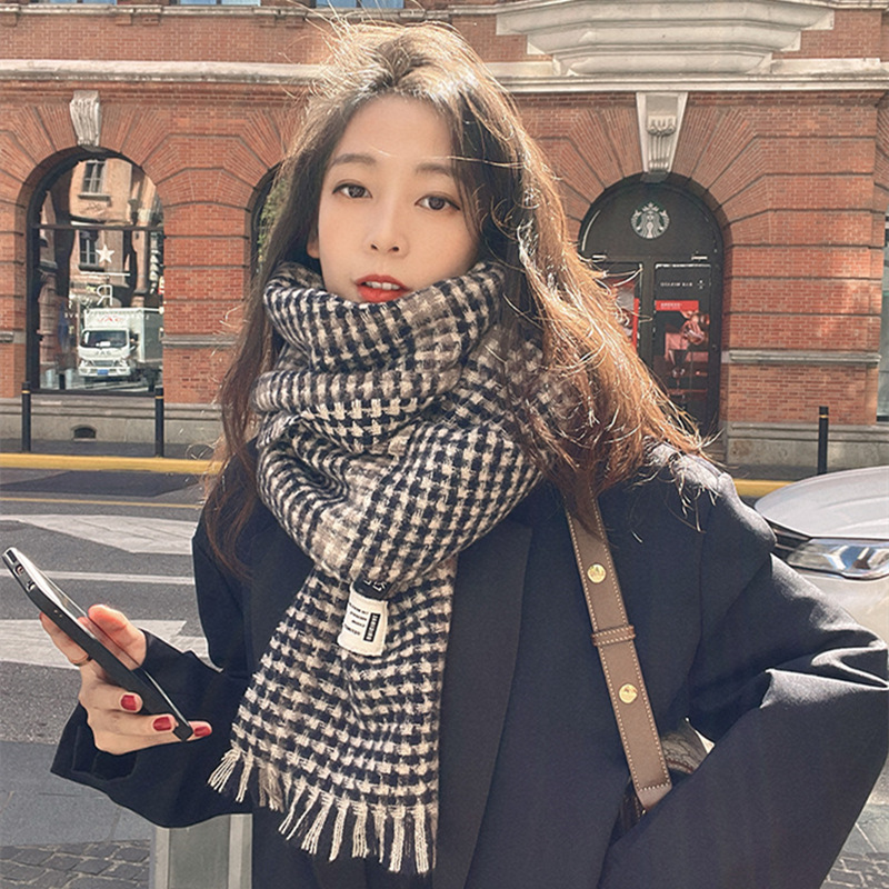 笑顔のマフラー女性秋冬千鳥格子韓国版百合2022新型ネット赤ストール保温プレゼントマフラー