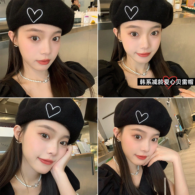 黒の甘いクールなベレー帽の女性秋冬の日系の大きい頭の周りの蕾の画家の帽子insネットの赤い顔の小さい帽子