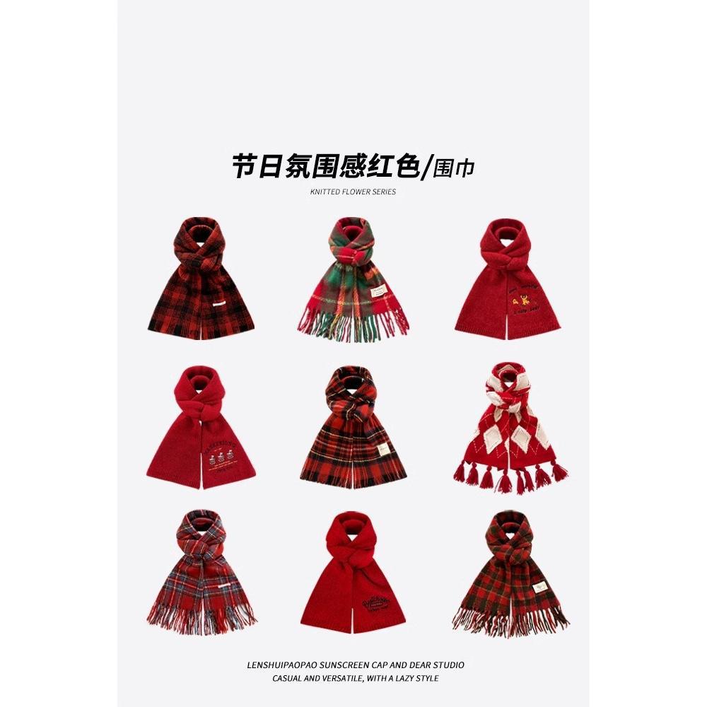 240g赤色の格子縞の経典のマフラーの冬の2024の新型の韓国版は厚くて暖かい新年の新年の保温のカップルを厚くします。