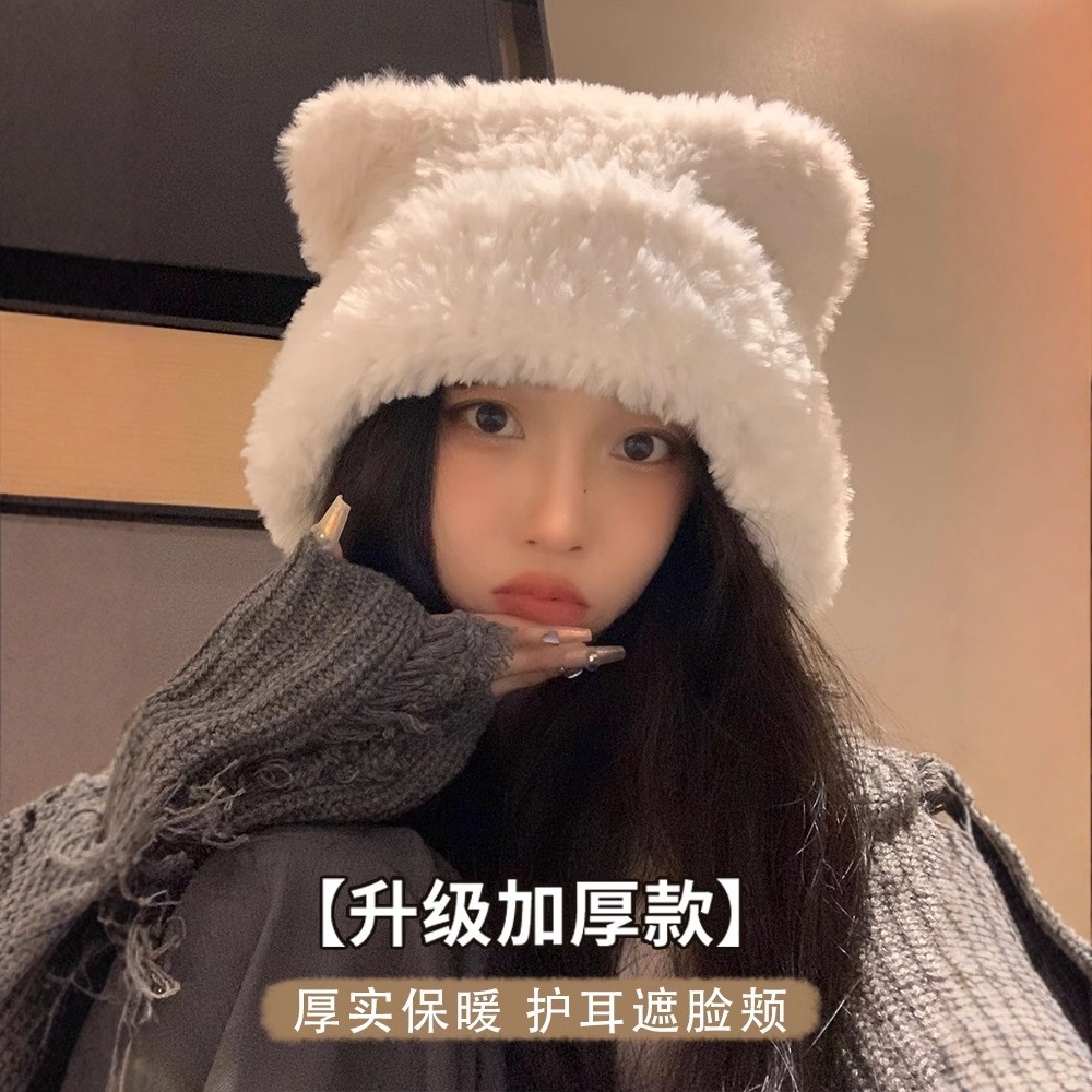 かわいいベアーのベルベットの帽子の子供は秋の冬の2024の新型の大きい頭の周りの毛糸の帽子は耳のニットの帽子を保護して顔が小さいです。