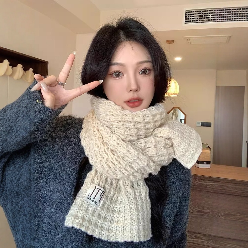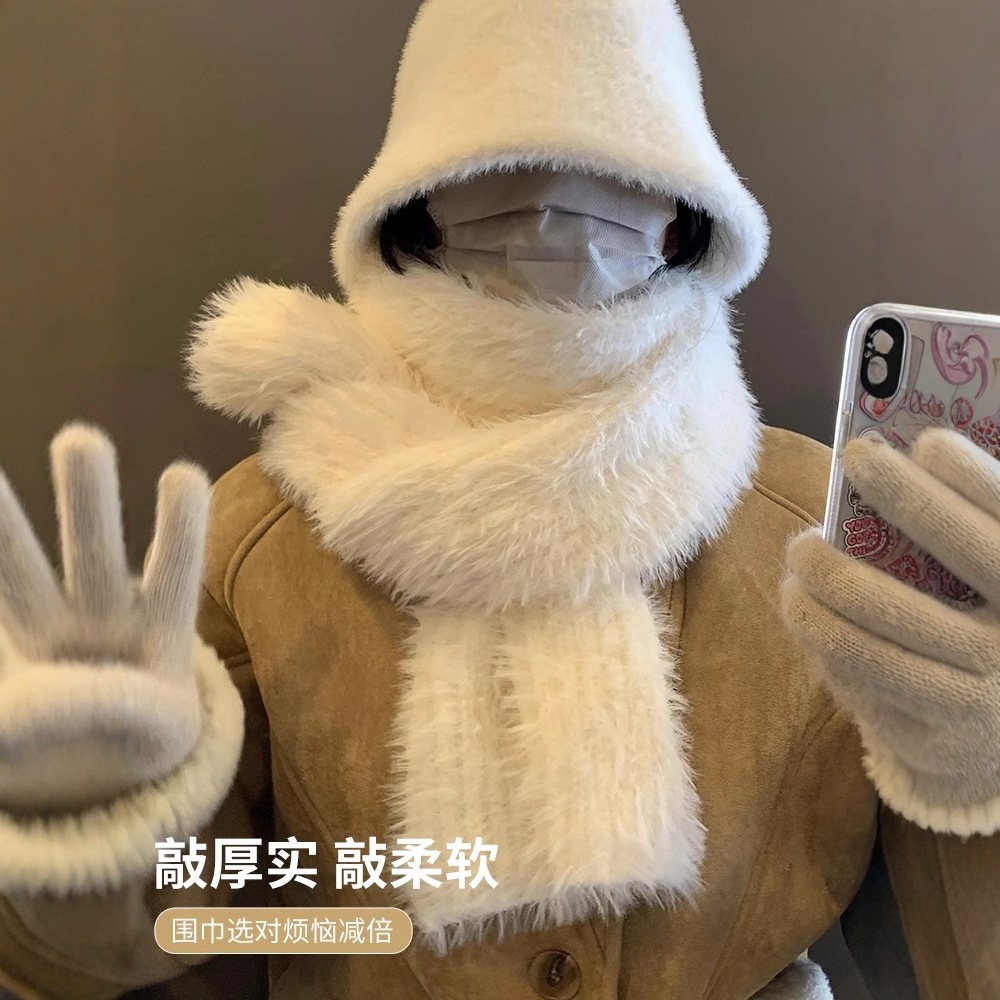 ぬいぐるみのマフラーの女性は冬2024の新型韓国版の高級感が厚くて暖かいニットの毛糸が首の白い学生を囲んでいる