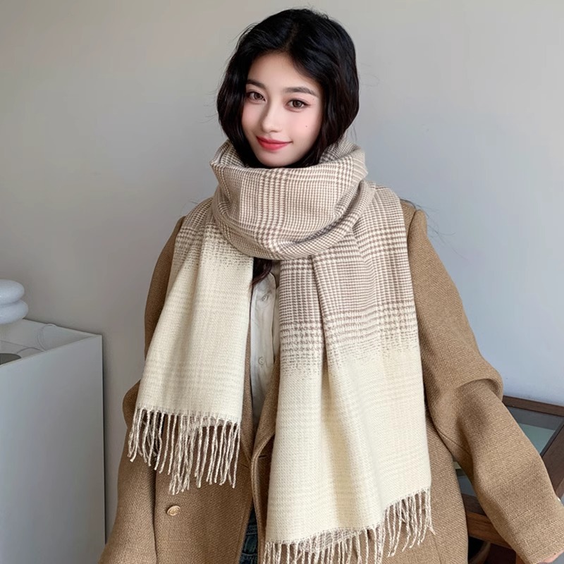 新しい韓国の格子はカシミヤのマフラーをまねています。
