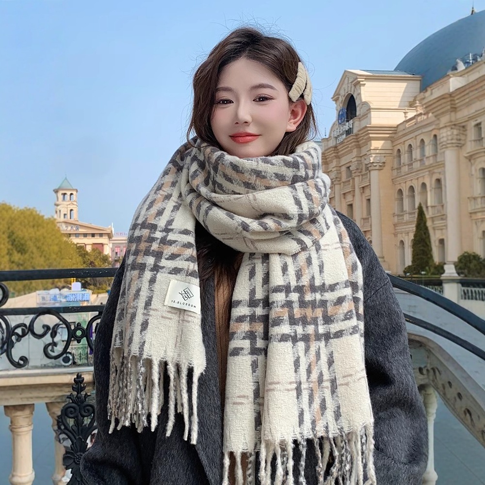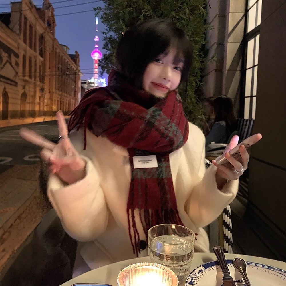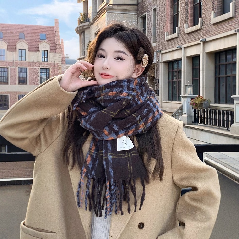 2024新型格子マフラー女性は冬に保温レトロな高級感ストールを厚くして首を囲む学生秋冬
