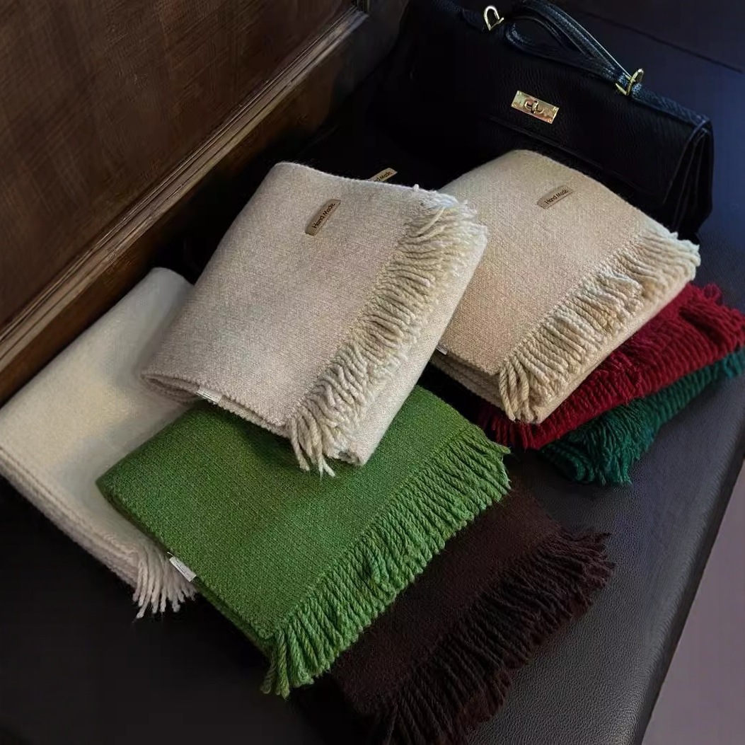 2024秋冬の新型韓国百合純色のフリンジとウールのマフラーと女性のストールの両用保温マフラー