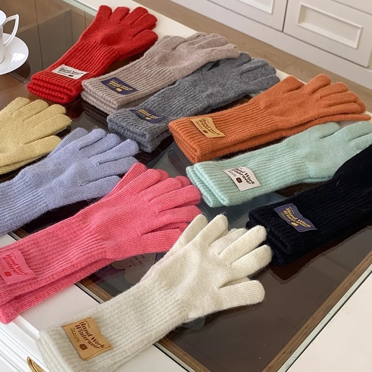 2024新型ニット手袋秋冬純色布かわいい五本指保温延長腕漏れ指タッチパネル手袋