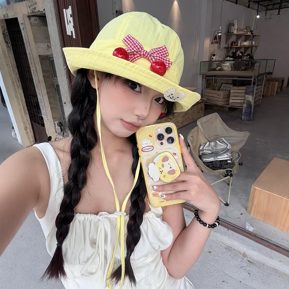 日系かわいいさくらんぼ速乾漁師帽女春夏の薄い通気性のある小さなつばの日よけ盆帽子