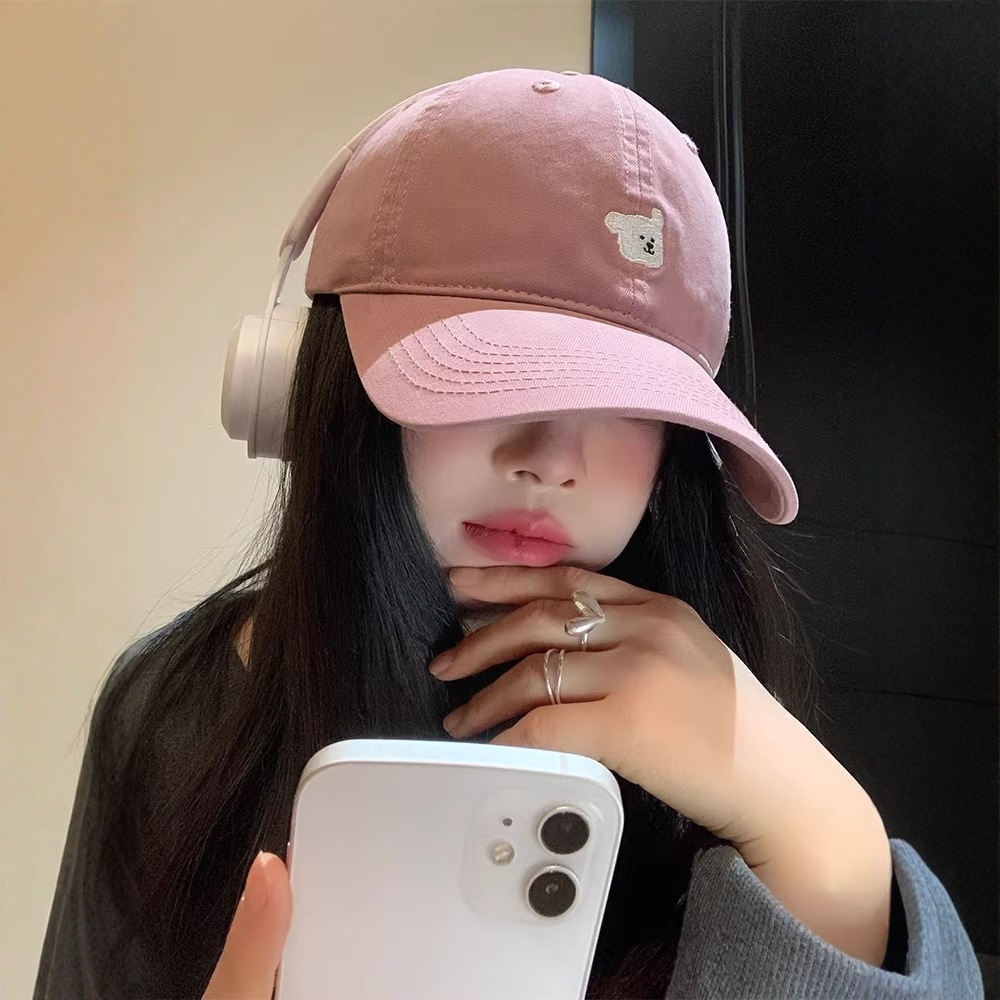 かわいい漫画の子犬ピンクの野球帽女性のための 2025 新しい韓国スタイルの大きな顔と小さな帽子つば広ひさしキャップ