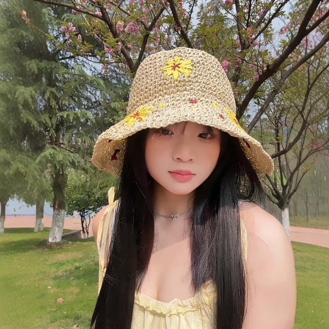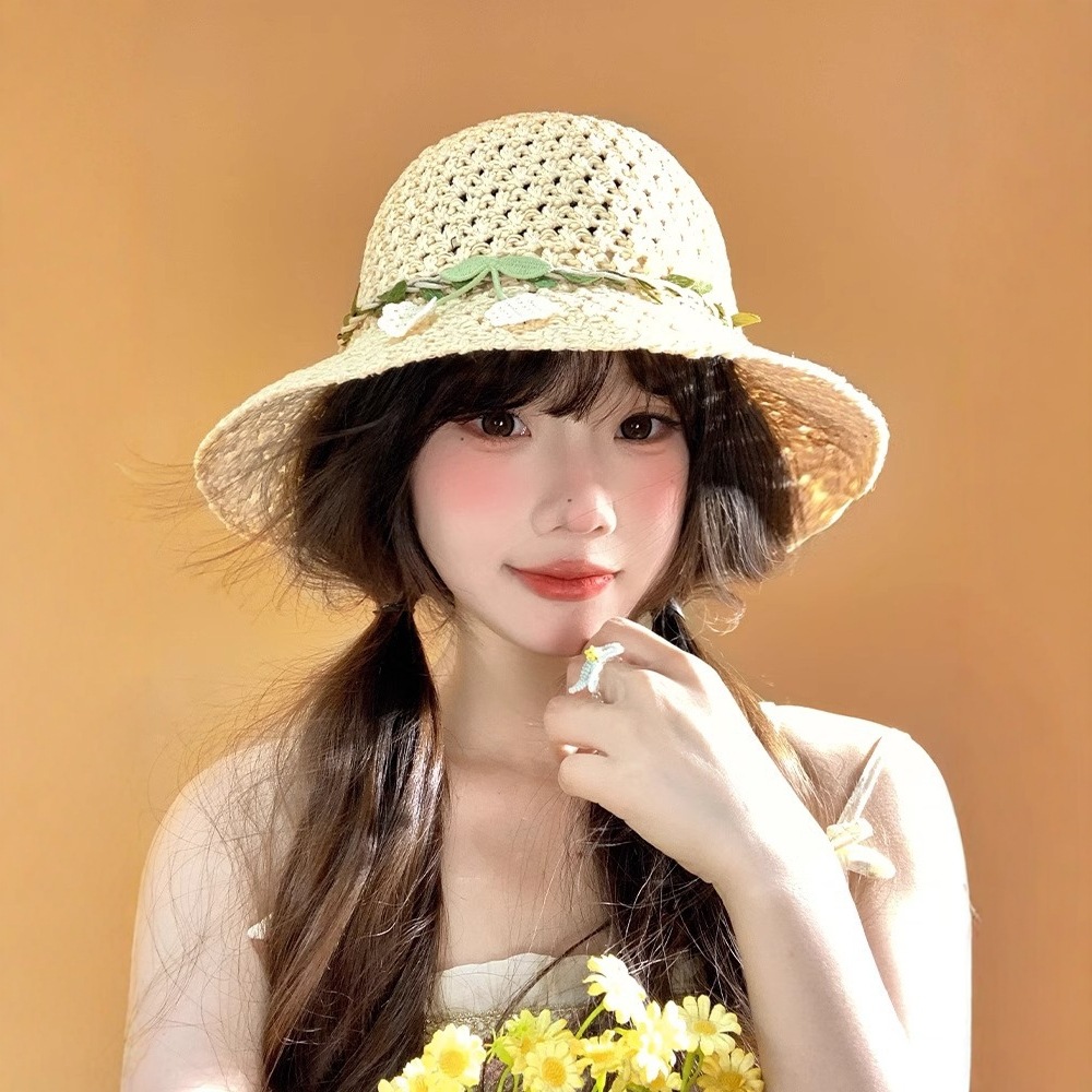 フランスの花の透かし彫りの麦わら帽子の女性2025夏の海辺のリゾート風の草編みの漁師の帽子の日よけの日焼け止めの日よけの帽子