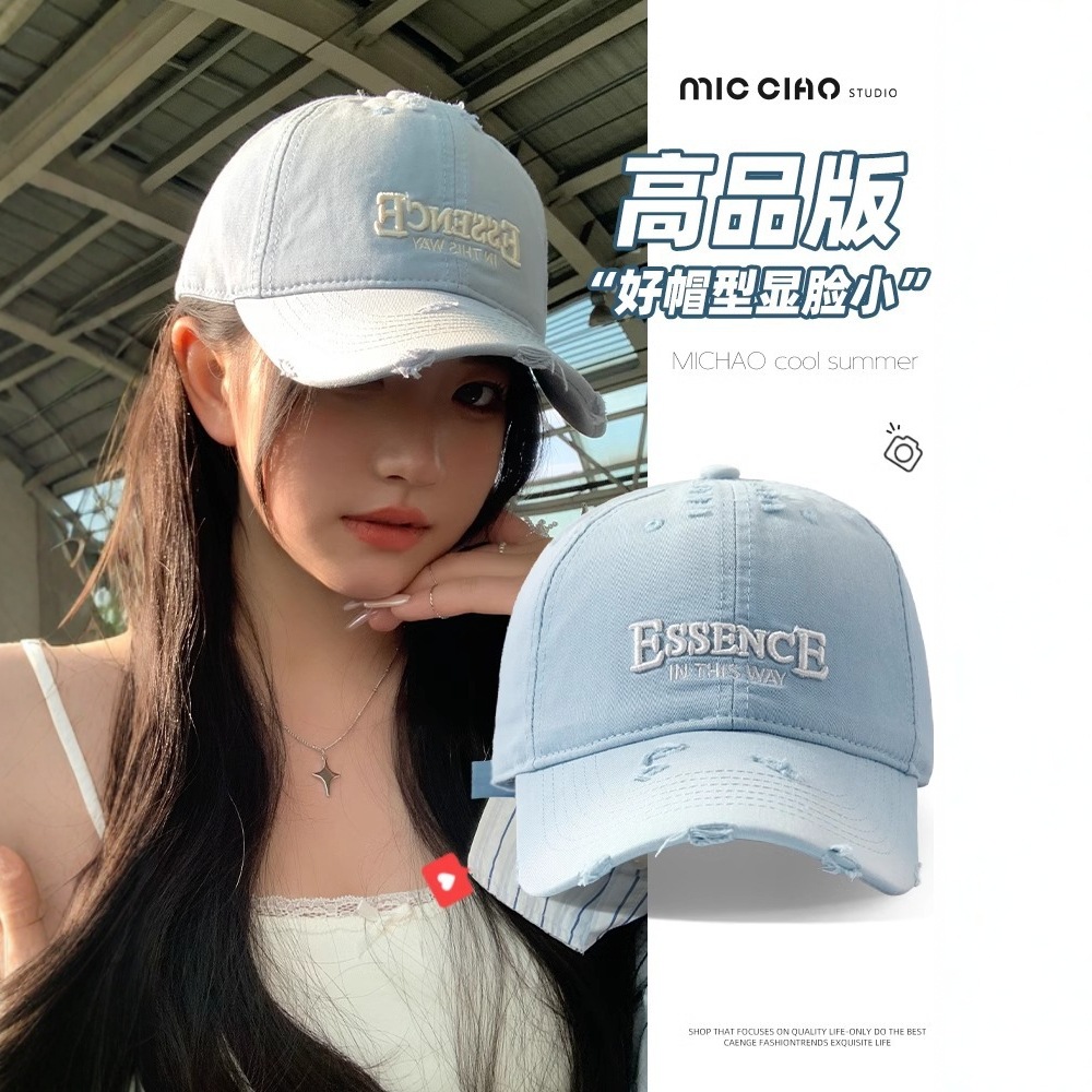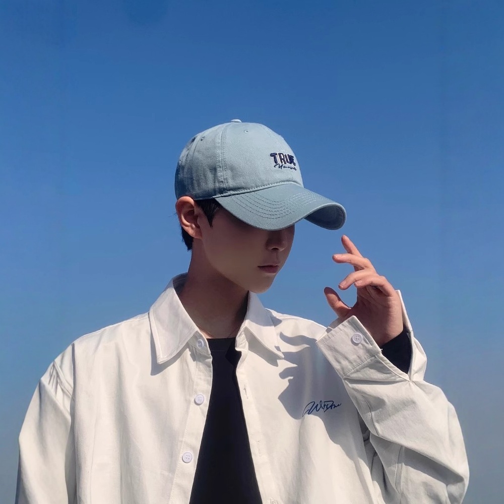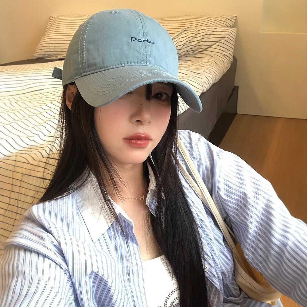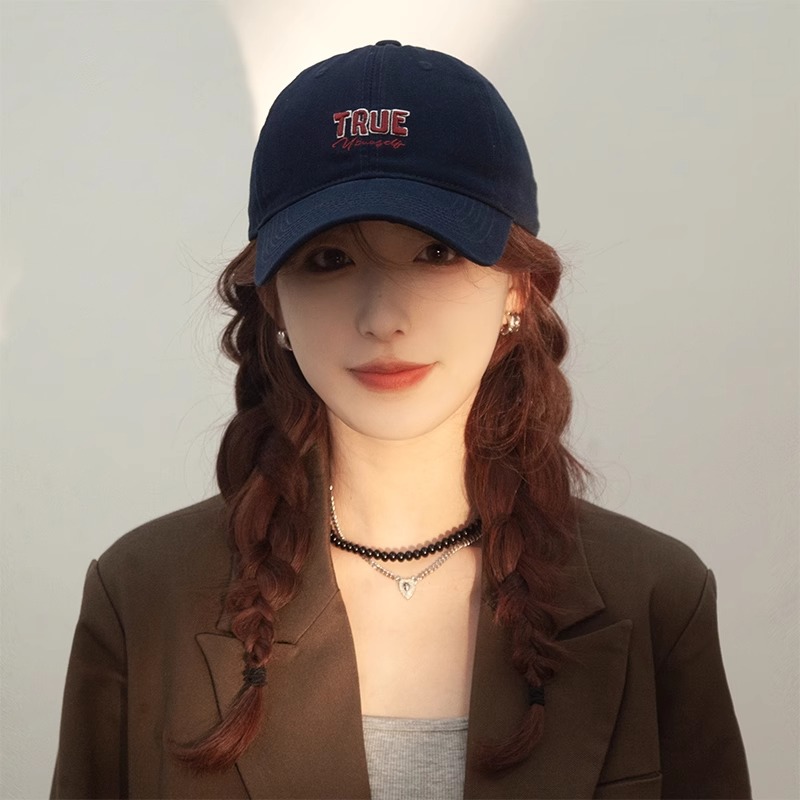 シンプルな風のアルファベットの青い野球帽の女性の春夏2025の新型の純綿の通気性の帽子の韓国版の百合のアヒルの舌の帽子