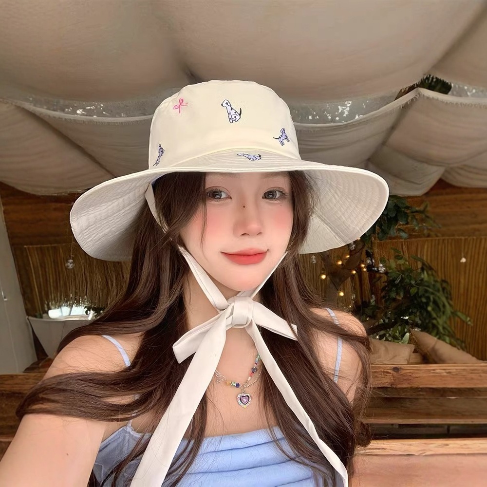 子犬の大きなつばの漁師の帽子の女性の夏の2025新型の日よけの日焼け止めの帽子