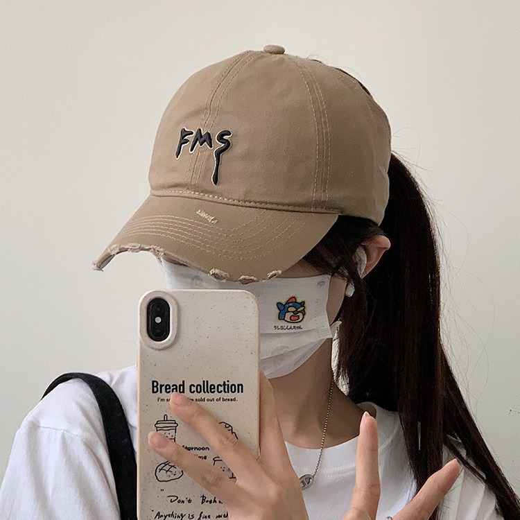 野球帽の女性の春夏アルファベット刺繍水洗い綿鴨舌帽は顔が小さく、帽子のつばを広くして柔らかいトップの日よけ帽を大きくしている