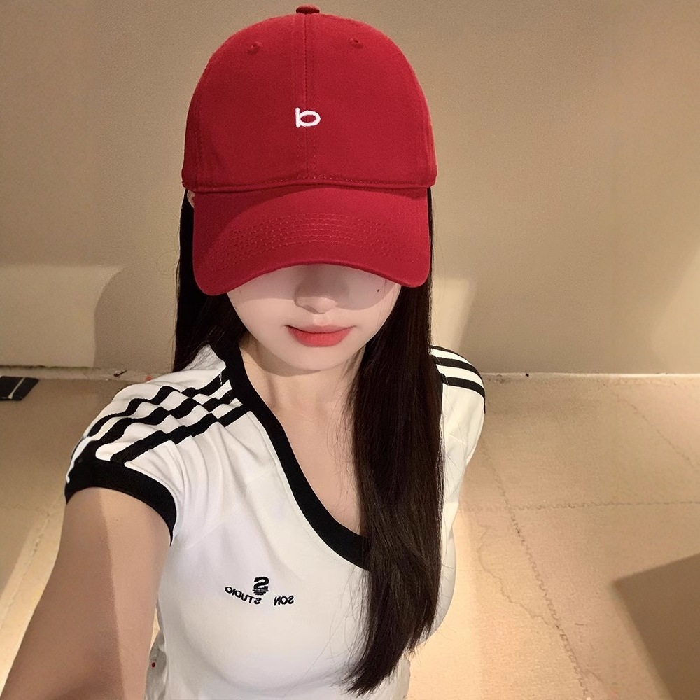 韓国版の赤い色を大きくして野球帽を深めます。女性2025年の春の新型の大きなつばのアヒルの舌の帽子は顔の小さい帽子の潮を現します。