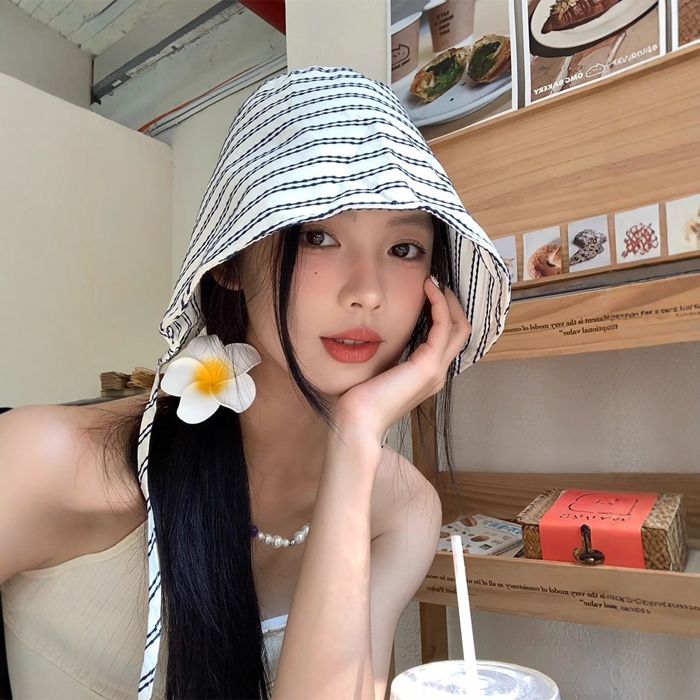 韓国版2025新型漁師帽子女性モデル春夏小清新ファッション百合盆帽子日焼け止め日よけ帽子ブーム
