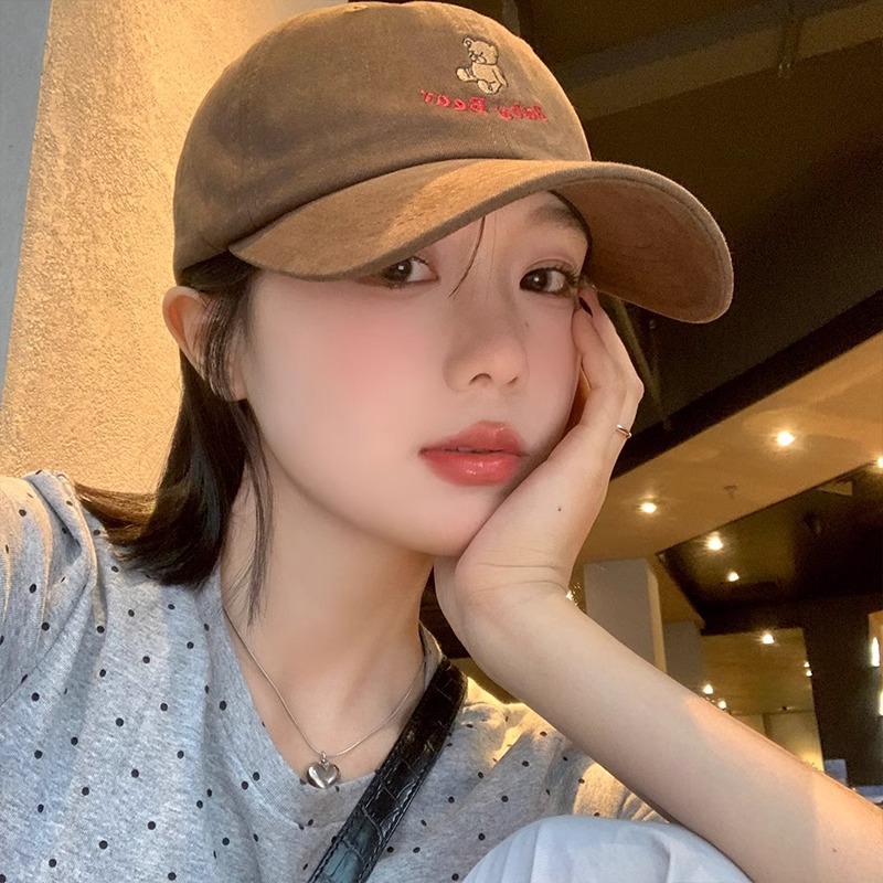 韓国版のかわいいアニメの熊の刺繍の野球の帽子の女性の夏の百合の日よけの大きい頭の周りは顔のアヒルの舌の帽子を現します。