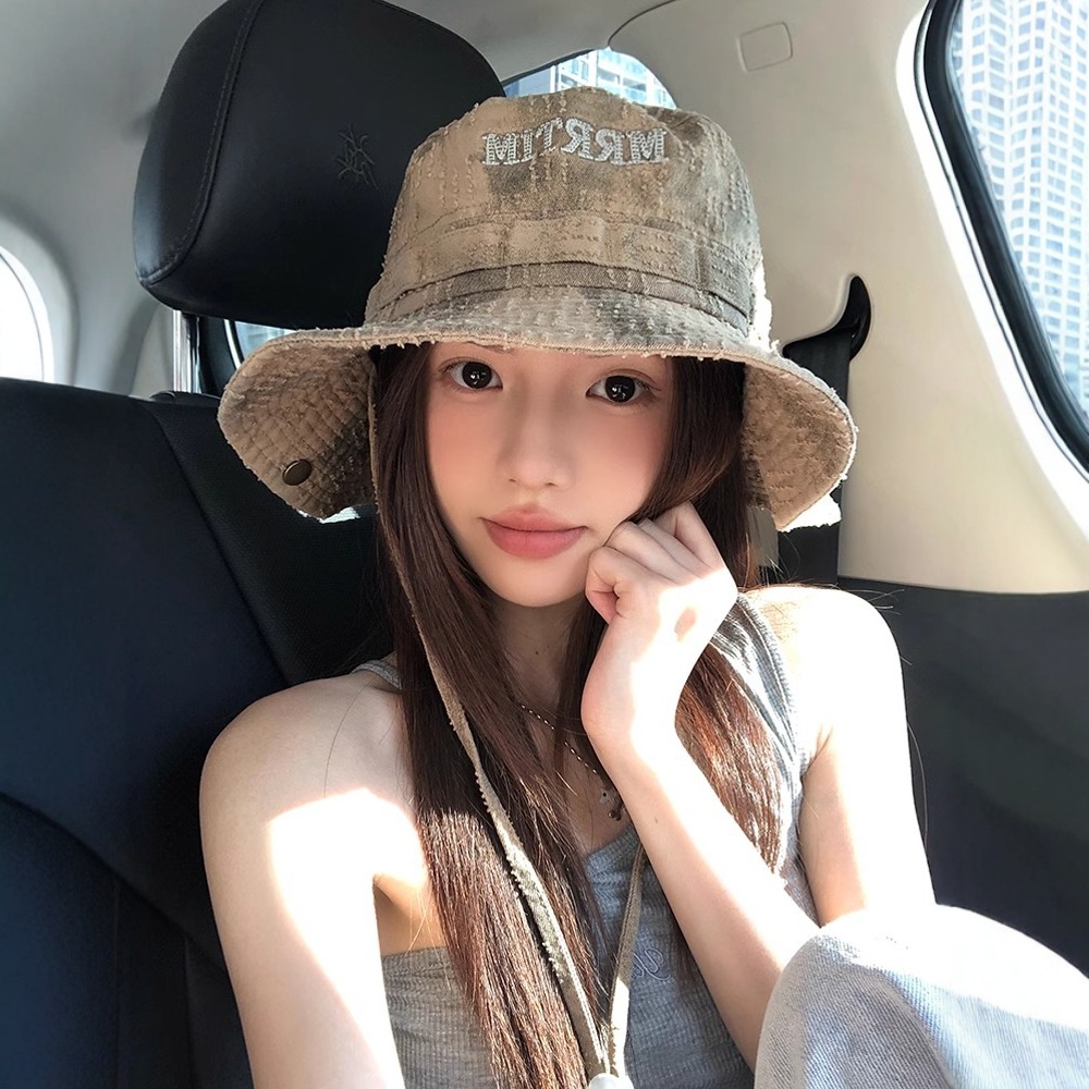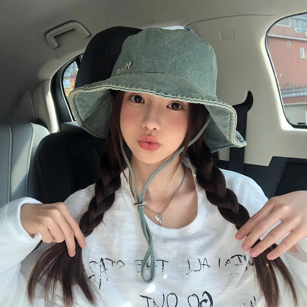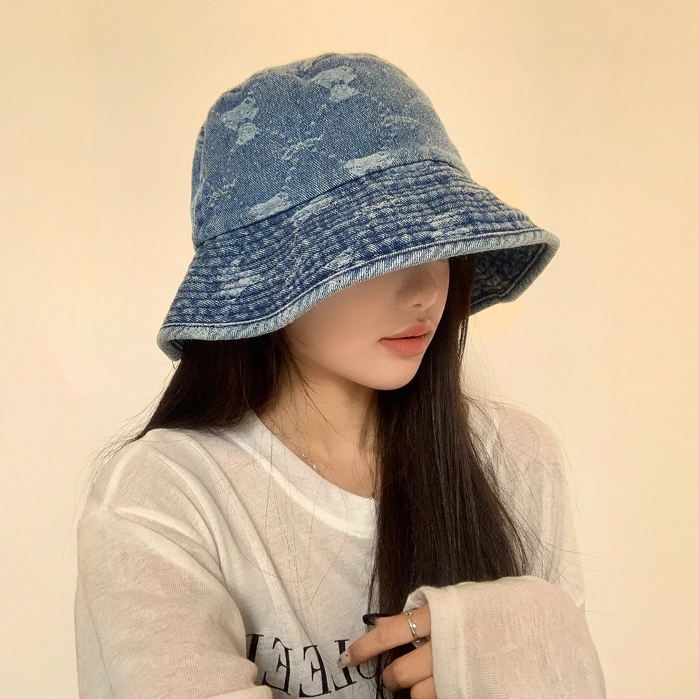 レトロな水洗いデニムの熊の漁師の帽子の女性の春の大きい頭の周りの百合の顔の小さい盆の帽子の日系のバケツの帽子